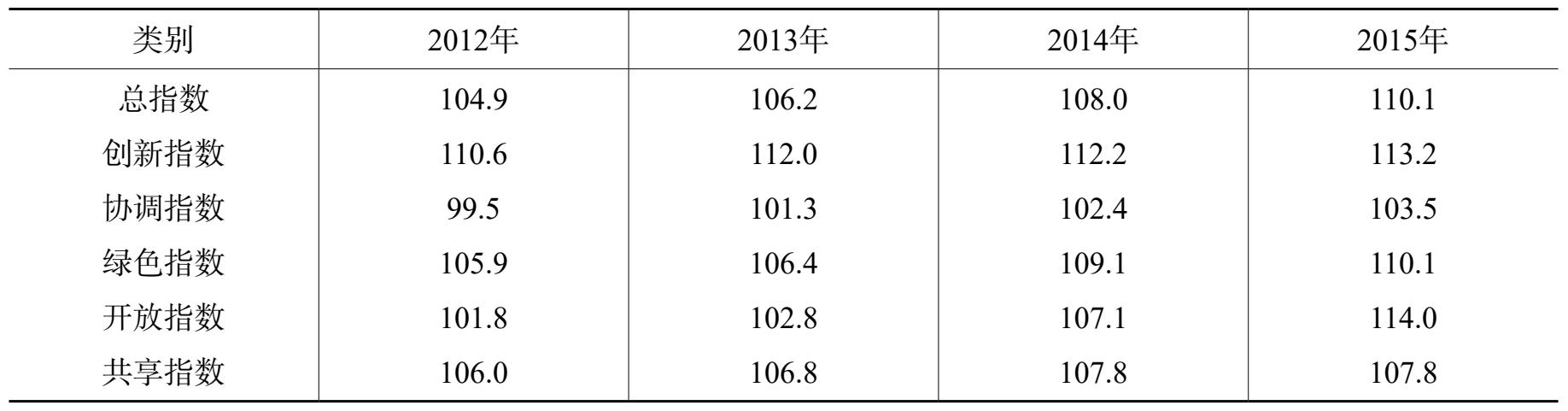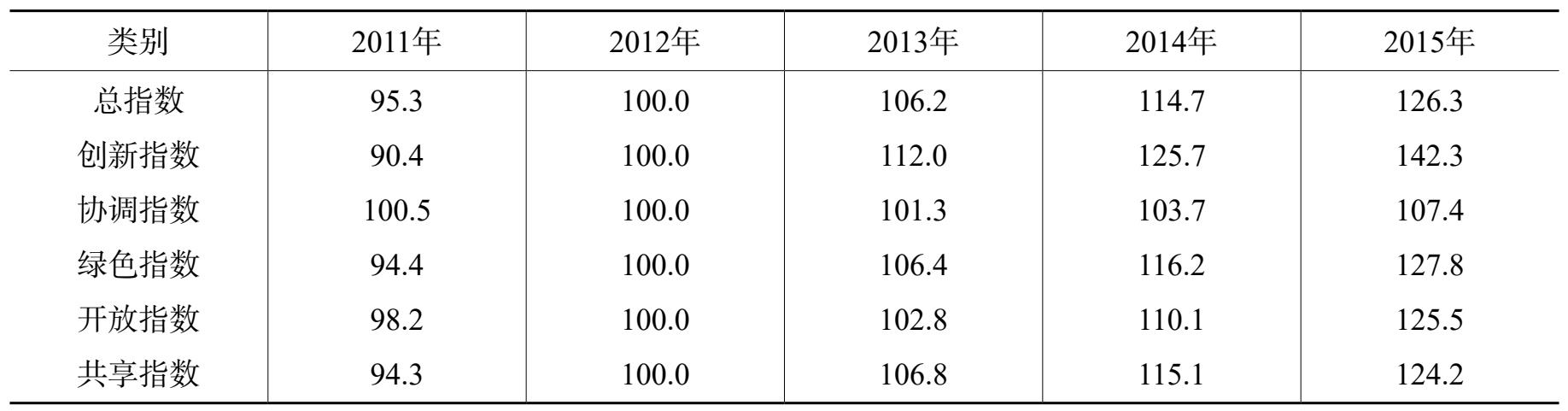 表2 深圳市2011—2015年落实“五大发展理念”定基发展指数