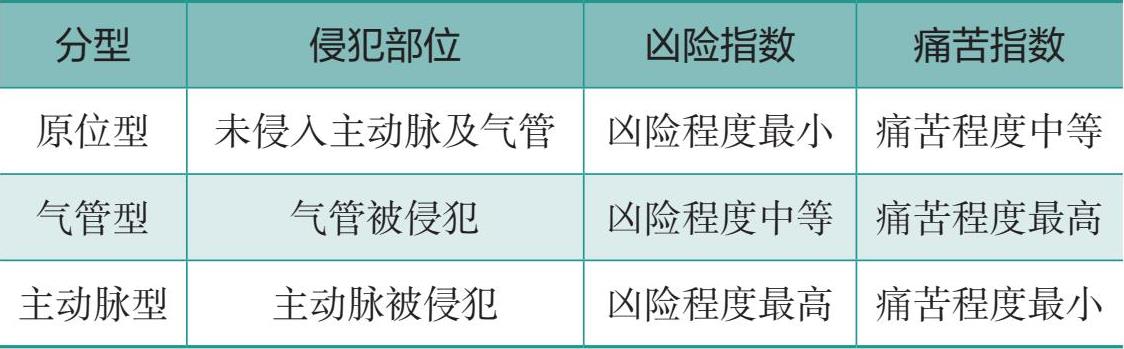 在痛苦指数和凶险指数的基础上,制订了超长食管癌的分型标准(表1-1),并以此指导手术适应证和禁忌证。手术指征不仅要控制在PET-CT未发现远处器官转移的范围内,还必须保证两个前提:主动脉型食管癌没有食管胸主动脉瘘的征象(即患者没有呕血,增强的胸部CT没有显示出食管胸主动脉瘘的征象,没有其他特殊临床表现等);气管型食管癌仅仅是侵及而不是侵入气管(特别是气管膜部)。这可以通过术前的纤维支气管镜观察、活检气管黏膜得到确认。