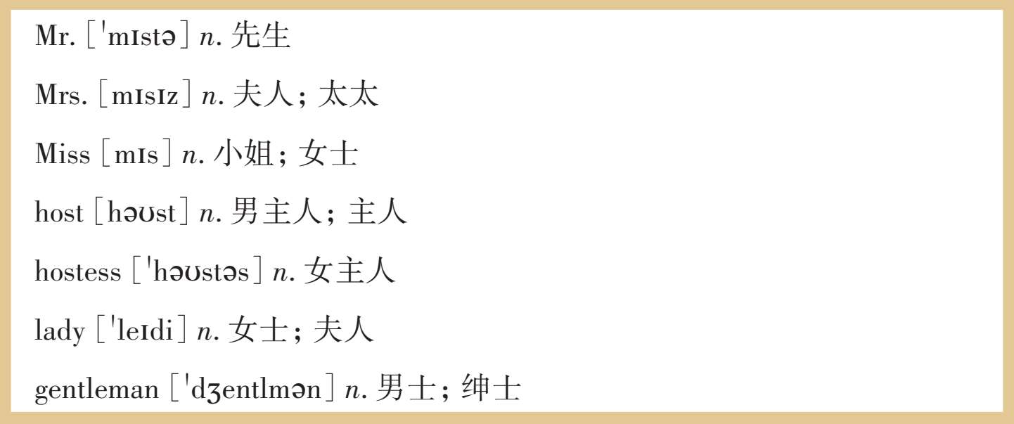 * 在不知道面试官姓氏时则用“ Sir 先生/ Madam 女士”来称呼。