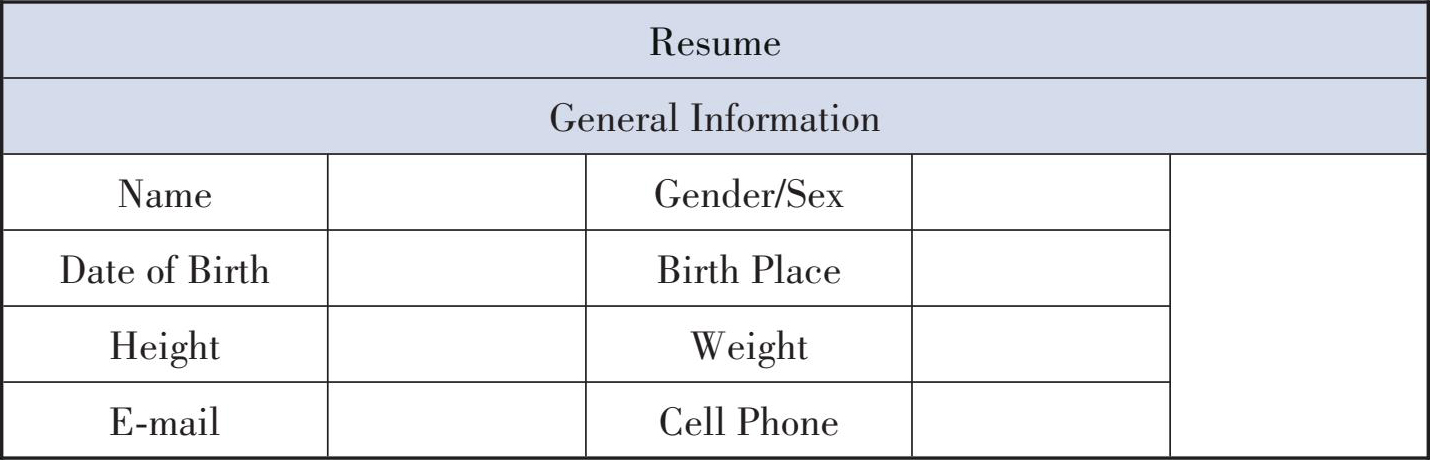 1.简历填写时常用 Gender 或者 Sex 来表示性别。