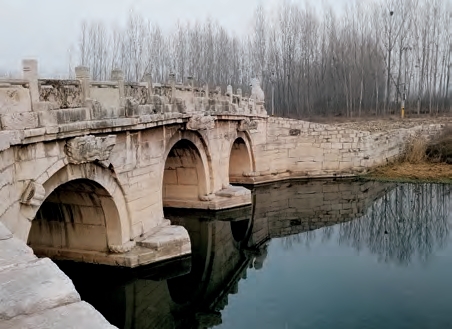 大汶口明石桥是大汶河上现存最古老、最完整的石桥,也是山东境内现存最长的古石桥(图0-12)。明代隆庆年间修建,故名“明石桥”。清代雍正八年被大水冲毁,当时的著名石匠姜桂松进行义修,故又称为“姜公桥”,石桥净长221米。