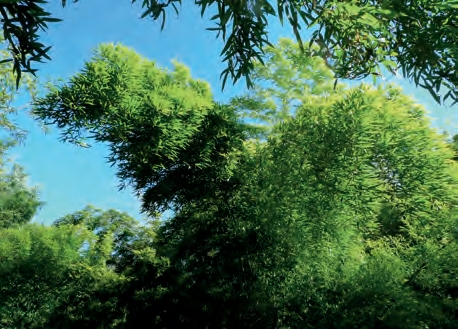 山茶——最北界青岛长门岩岛自然分布耐冬群(图0-13)、鹅耳枥——最北界沂山歪头崮上自然分布上万株以上(图0-14)、毛竹——最北界沂源鲁山引种成功(图0-15)、茶叶——最北界青岛崂山引种成功(图0-16)、乌桕——最北界威海刘公岛、中国最大汉柏群——泰安岱庙汉柏院、天下第一银杏——莒县浮来山4 000岁古银杏、江北古蜡梅群——趵突泉公园沧园百年古腊梅群、山东第一社树——植于威海环翠楼公园前的海岱社树。