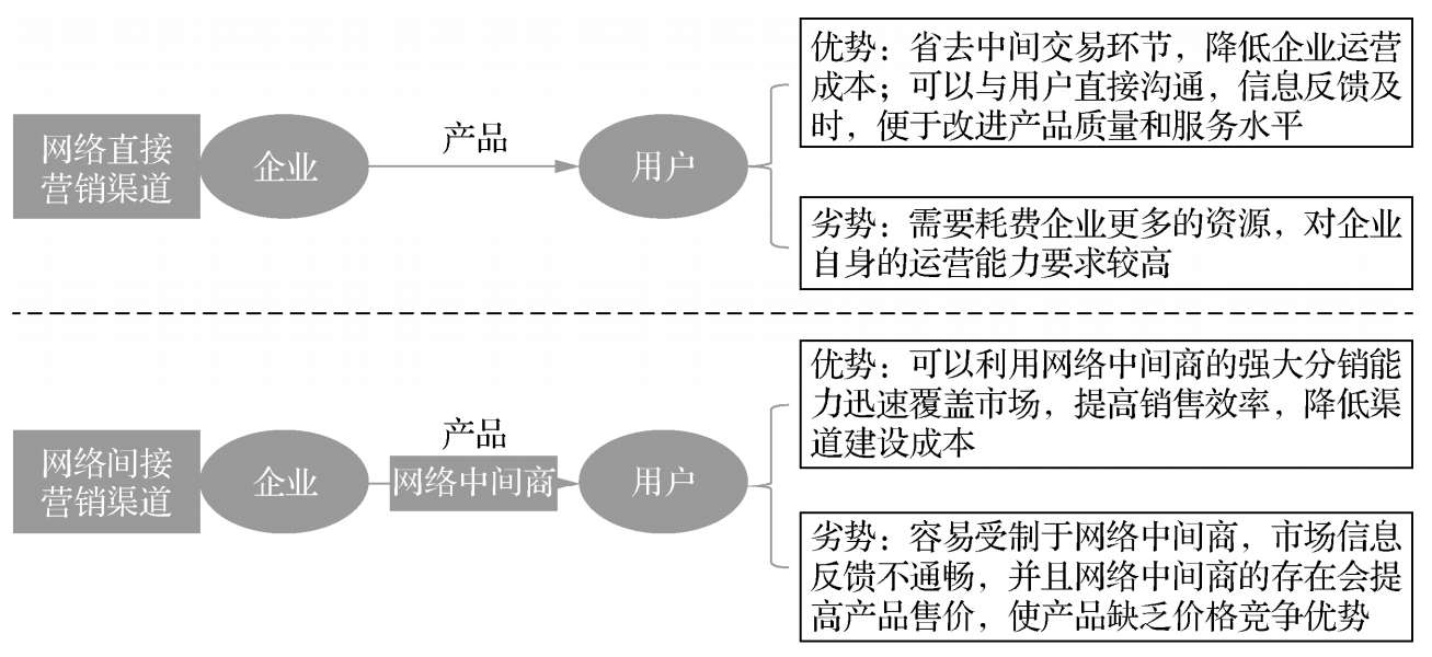 图1-1 网络直接营销渠道和网络间接营销渠道对比