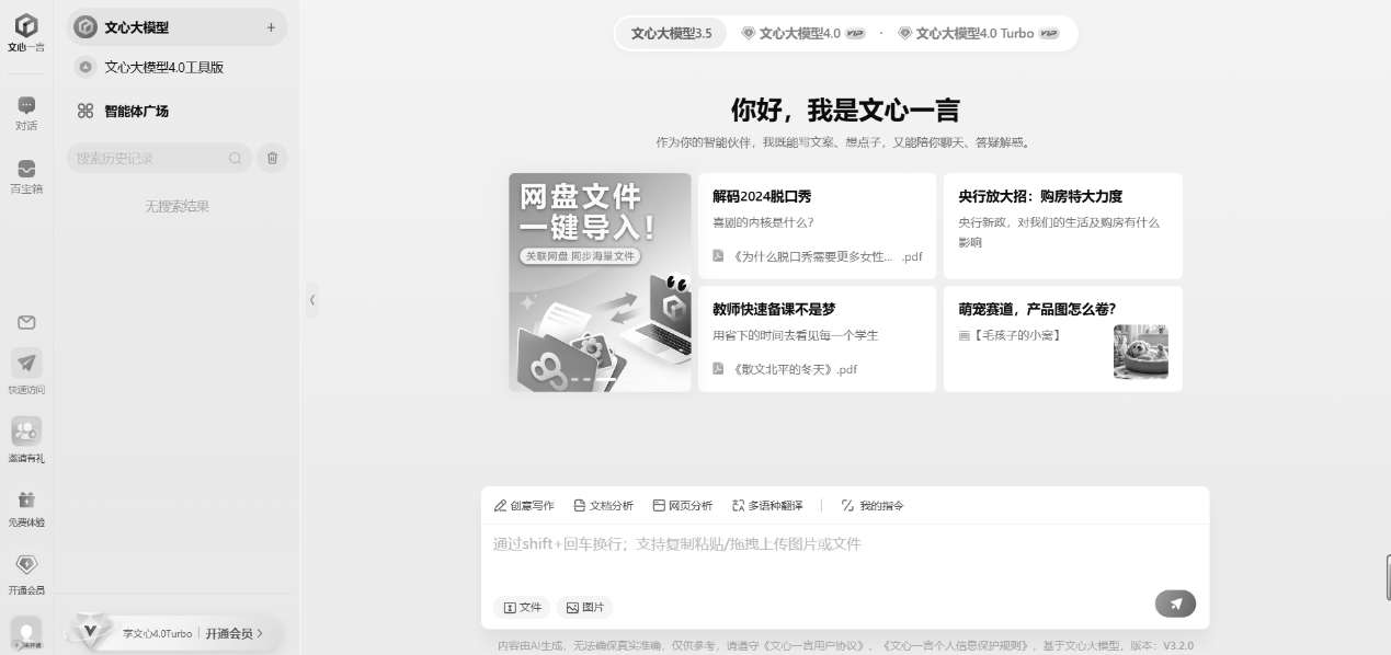 (4)发送指令。打开文心一言主界面,在输入框中输入指令,单击