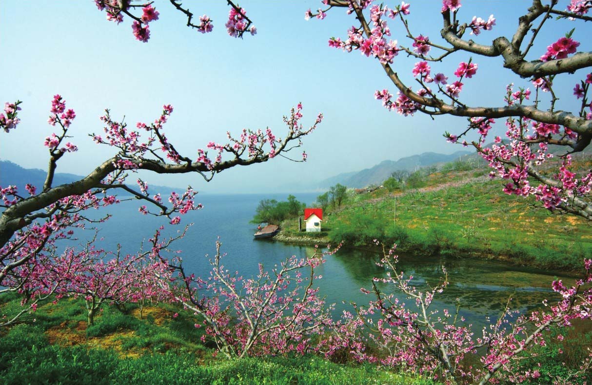 河口位于辽宁省丹东市宽甸满族自治县境内,鸭绿江百里黄金旅游带的中上游。图为具有自然景观代表性的万亩桃园