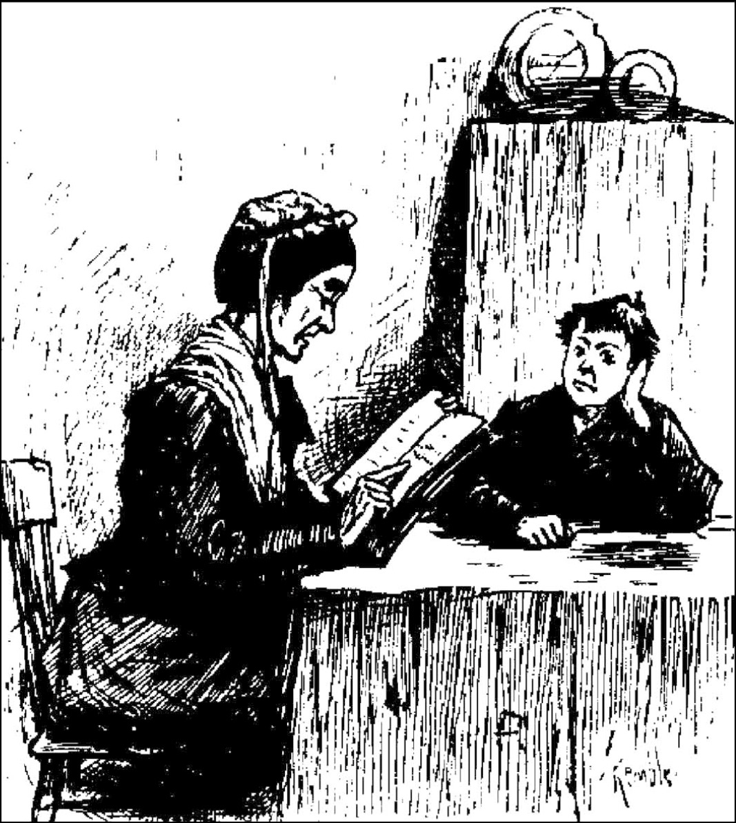 她的妹妹华珍小姐,一个细挑身材的老小姐,戴一副眼镜,前不久才来和她同住。她拿来一本拼音课本,故意难为我。她逼着我死啃了近一个钟点,寡妇这才叫她歇口气。我实在再也熬不住了。可是又是闷死人的整整一个钟点,我实在烦躁得不行。华珍小姐会说:“别把你的一双脚搁在那上边,哈克贝利。”