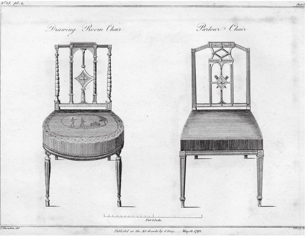 图2.2 客厅所用的椅子。[图片来源:Thomas Sheraton,The Cabinet-Maker and Upholsterer's Drawing-Book:In Three Parts(London,1793),plate 31.]