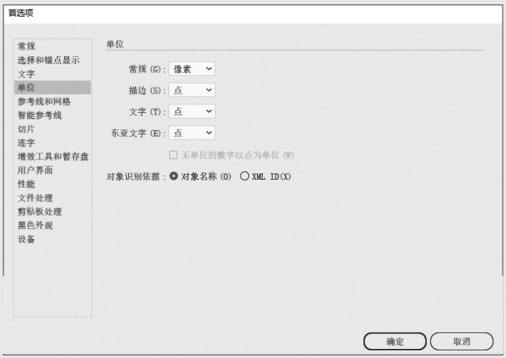 执行“编辑>首选项>单位”菜单命令,在弹出的“首选项”对话框中也能修改标尺的单位,如图1-83所示。不过,用这种方式修改会改变Illustrator中单位的设置,是对全局起作用的。如果仅想改变当前文档中标尺的单位,可以使用另外两种方法。