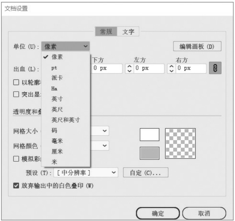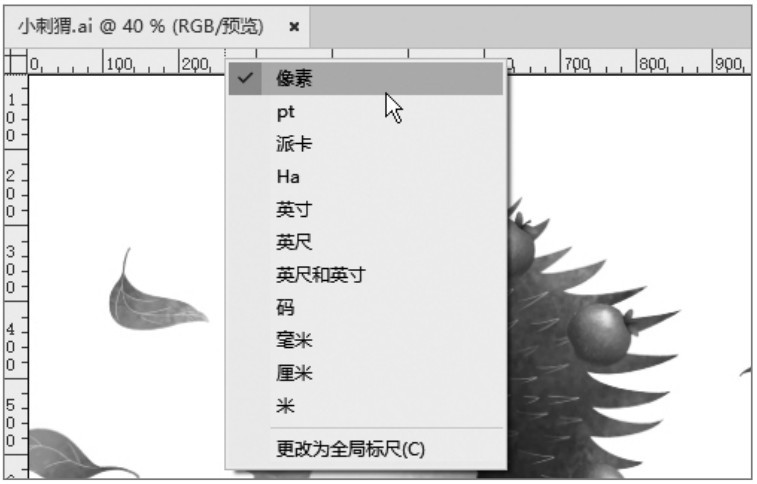 单击控制栏中的“文档设置”按钮,在弹出的“文档设置”对话框中可以修改标尺的单位,如图1-81所示。在标尺的任意位置单击鼠标右键,在弹出的菜单中也可以修改标尺的单位,如图1-82所示。