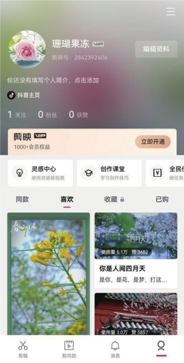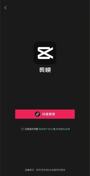剪映有移动端(剪映App)和电脑端(剪映专业版)两个版本,两个版本可以协同操作,但前提条件是,剪映App和剪映专业版必须登录同一账号。而剪映作为抖音官方推出的视频剪辑软件,支持用户使用抖音账号登录,这样用户不仅可以实现剪映App和剪映专业版的协同操作,还可以实现剪映与抖音之间的无缝对接。下面将介绍使用抖音账号登录剪映App的操作方法。打开剪映App,在主界点击“我的”按钮