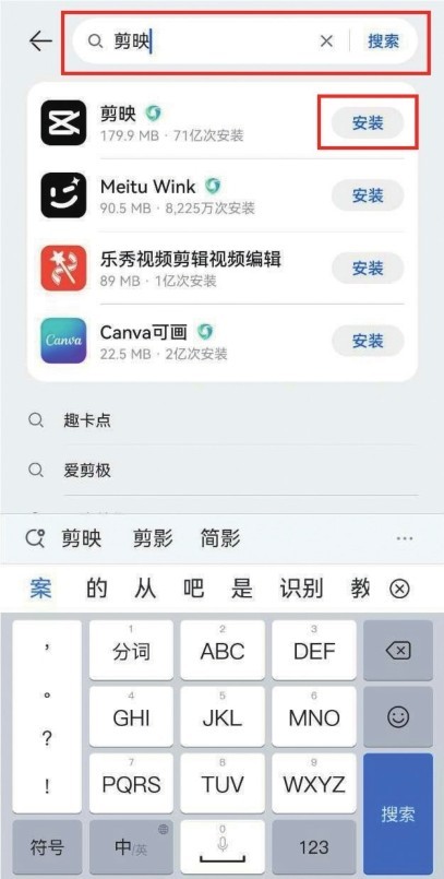 剪映App的安装方法和寻常手机应用的安装类似,只需要在手机应用市场中搜索“剪映”并点击安装即可,下面为大家讲解具体的操作方法。