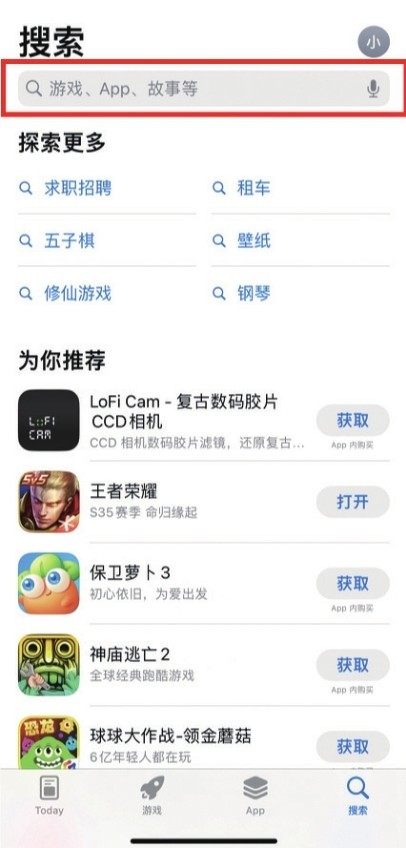 打开手机“AppStore”(应用商店),进入“AppStore”后,进入搜索页面,在搜索栏中输入“剪映”,如图1-6至图1-8所示。