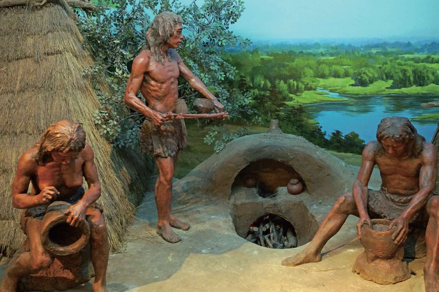 那时,青壮年的男人成群结队,手持木棒、石矛等,每天出没于山野密林和湖沼河旁,围捕野兽,打捞鱼虾;妇女主要从事采集、制造陶器、养老抚幼等活动。