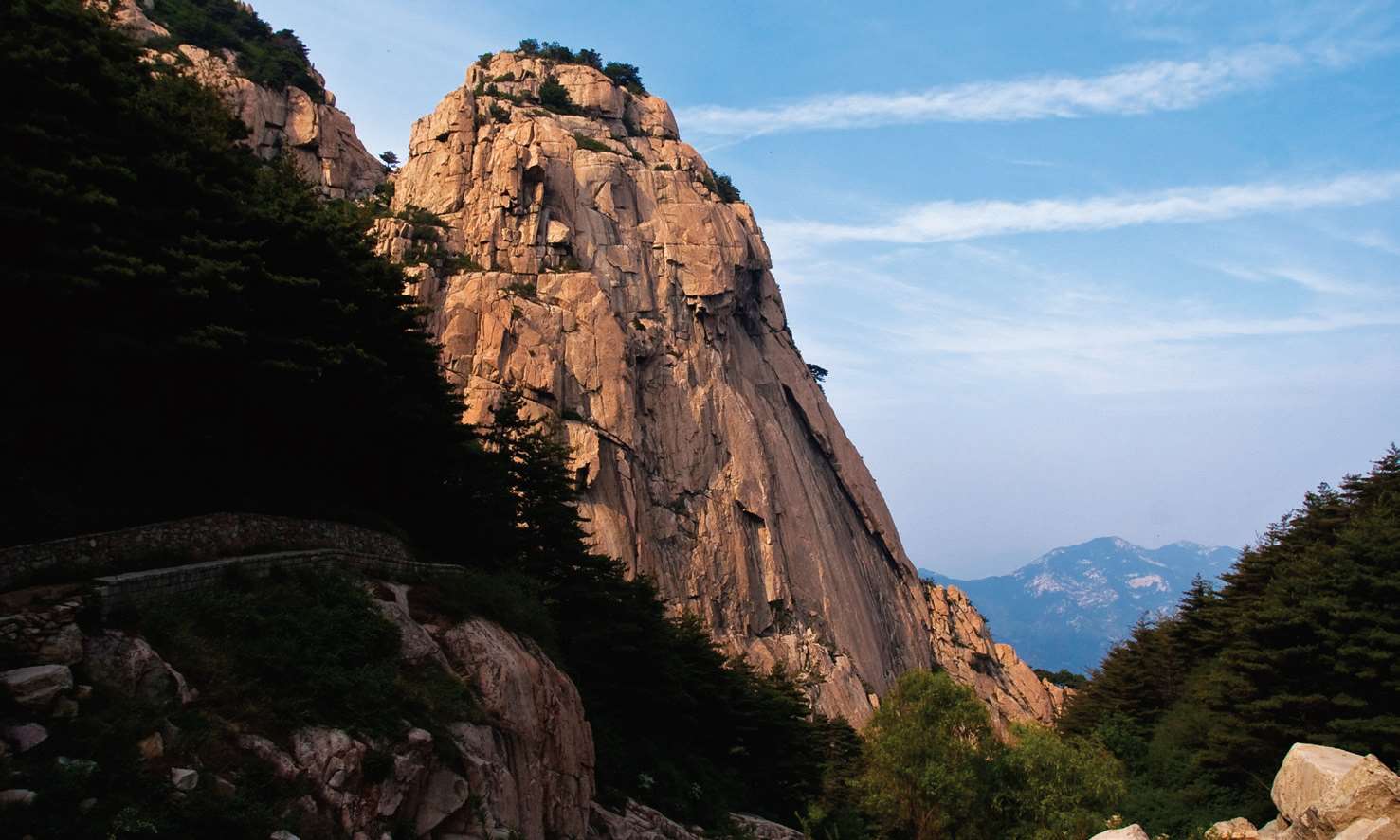 天烛峰在泰山的东北麓,有一条蜿蜒曲折的登山路直达岱顶。沿着这条路,可见天烛峰景区的景致。这里,奇石能言,清泉有声,大小天烛朝天立,悬崖巨壁夹谷而行。