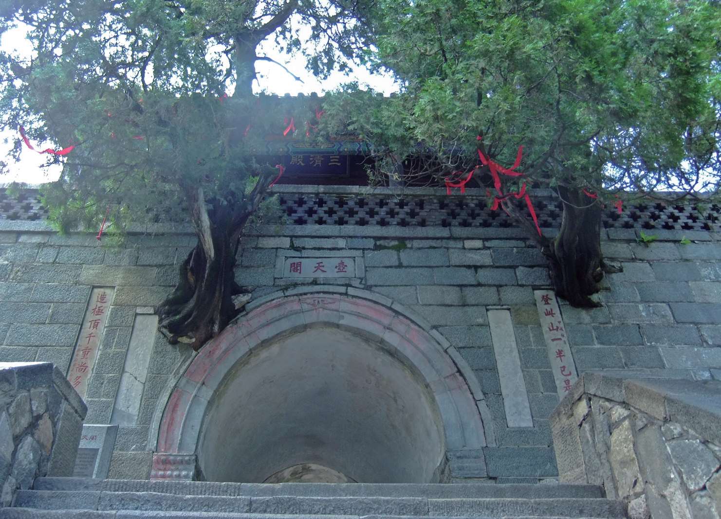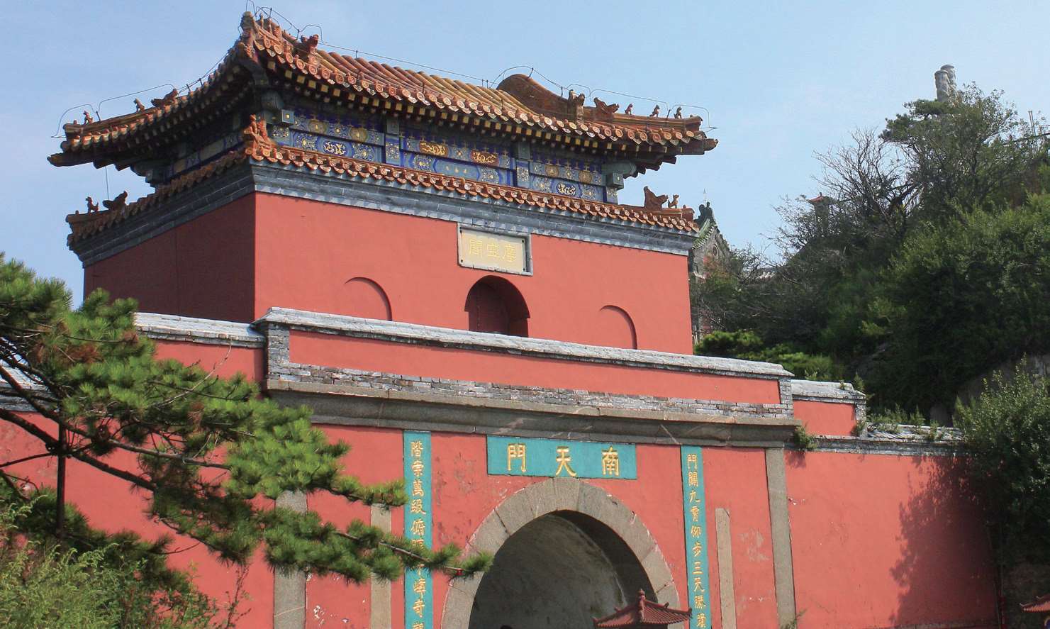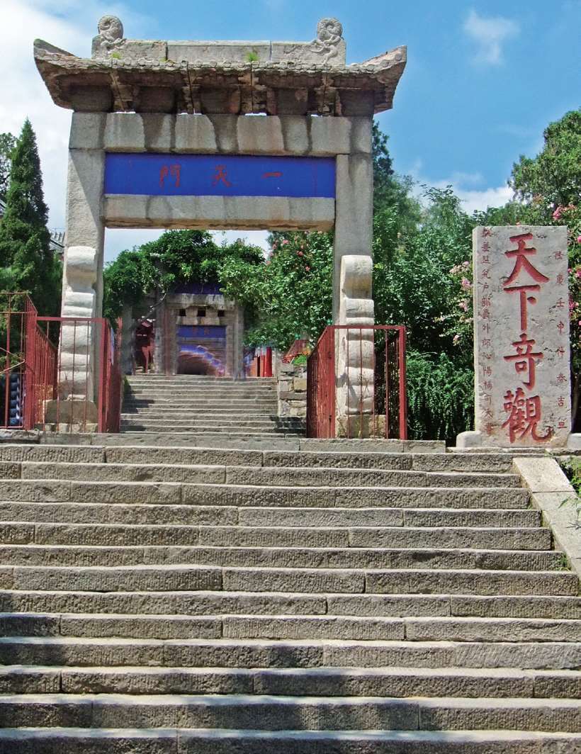一天门坊建于明代,从开山第一庙关帝庙拾阶而上,至红门宫前,三重石坊,形若阶梯。明代参政龙光题额,1714年巡抚李树德重建,两侧有明代人题“天下奇观”及“盘路起工处”大字碑。