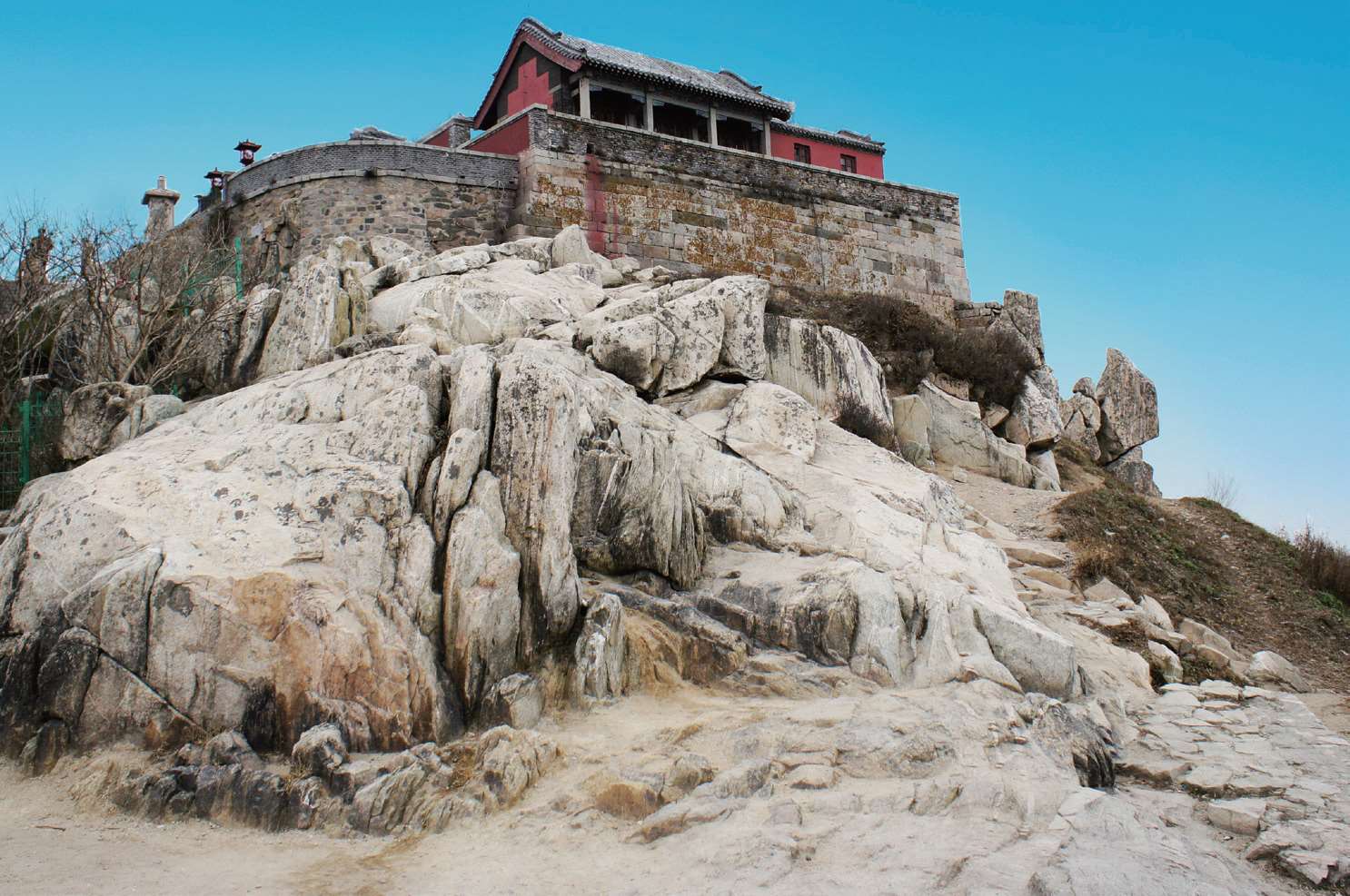 探海石又叫拱北石,是泰山著名的标志性景观之一,它像一只报晓的雄鸡,气宇轩昂地伫立于泰山之巅,翘首以待,为世人迎来辉煌的黎明。