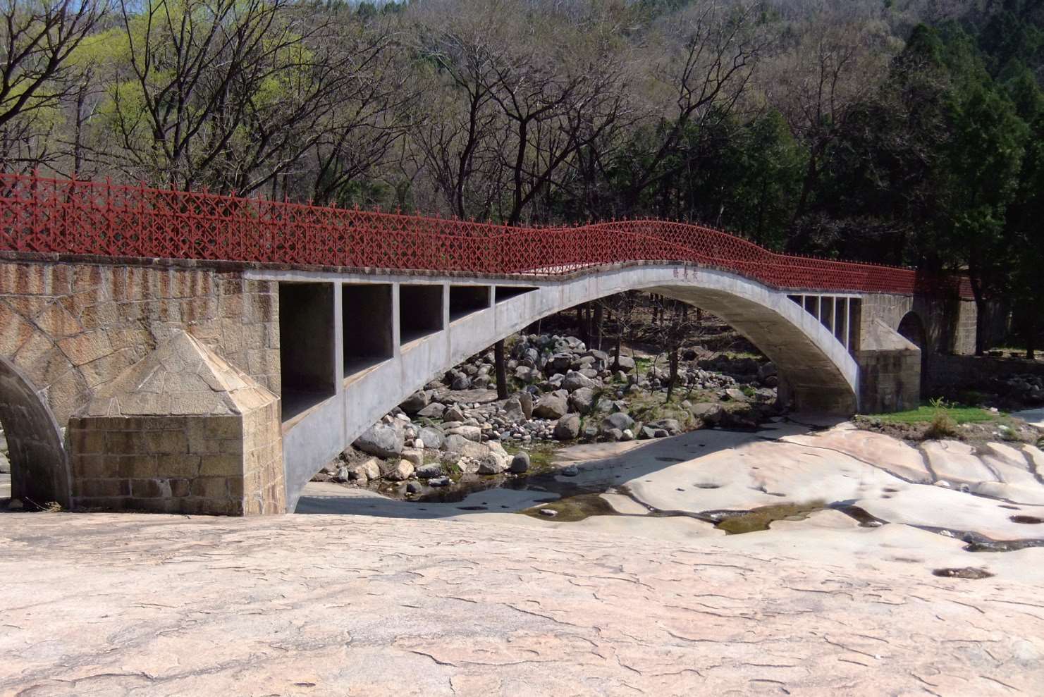 长寿桥建在泰山黑龙潭上,一桥飞架东西,似龙潭横生一道浓眉,与游人传情,如山涧跃出一条彩虹,为龙潭增姿加色。桥身朱红,与两岸青山相映成趣。人行其上,鸟瞰龙潭胜景,纵观西溪豁达秀色,简直美不胜收。