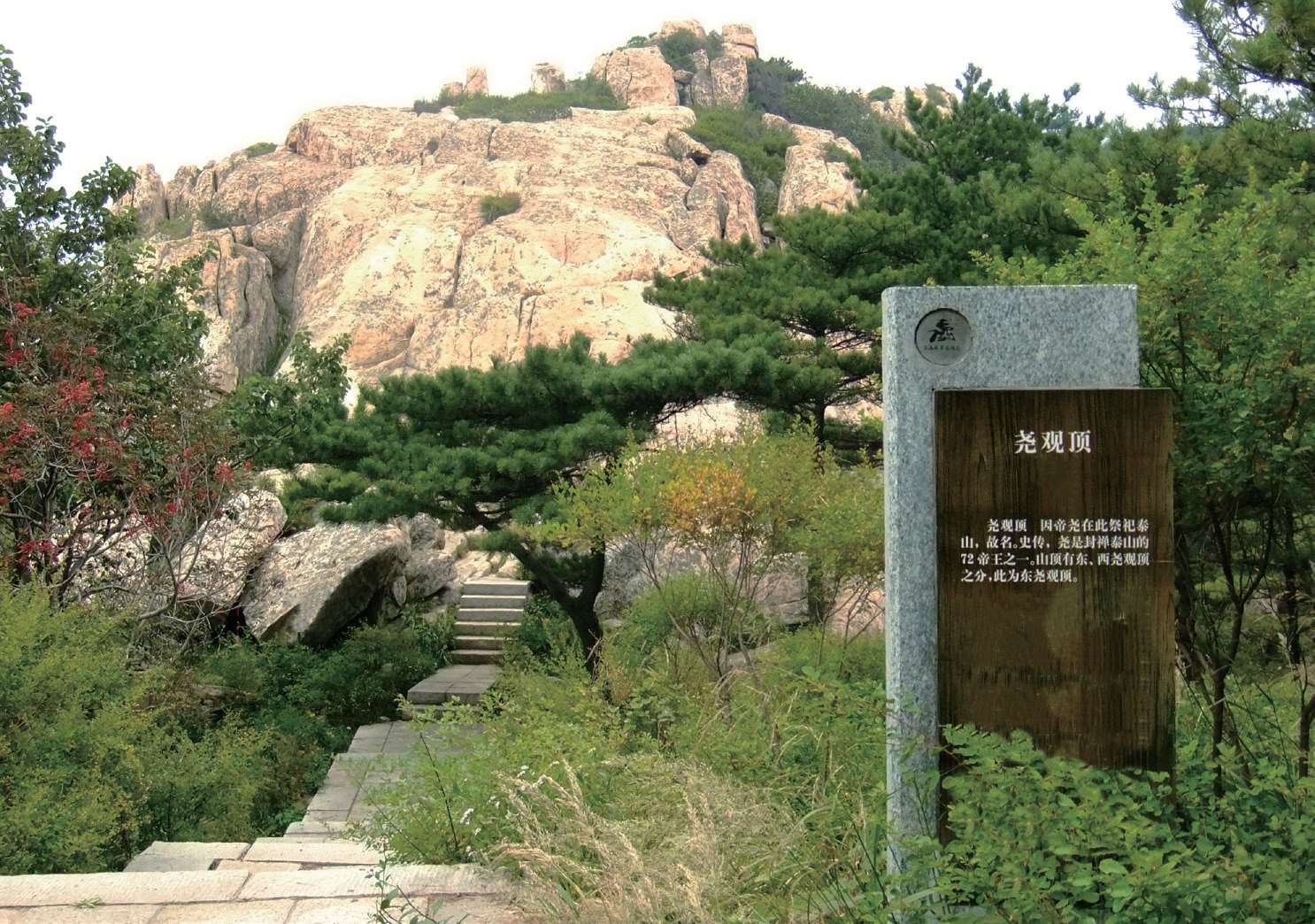 尧观顶在泰山的北天门,有东尧观顶和西尧观顶。传说远古时的尧帝曾来到这里,在东尧观顶看日出,到西尧观顶望日落。