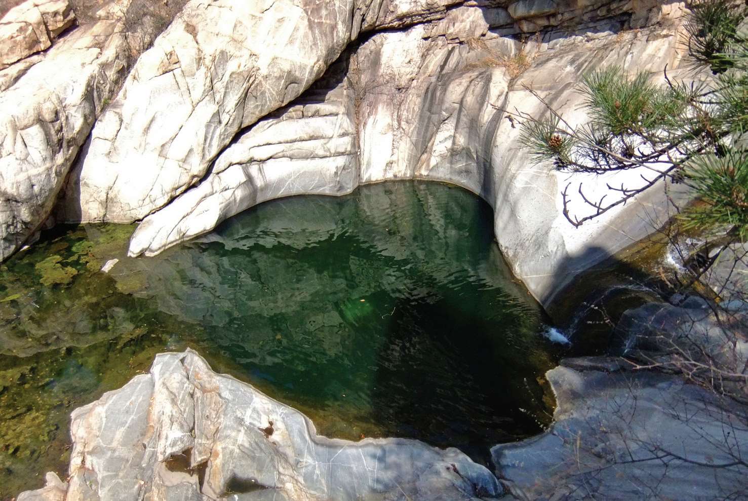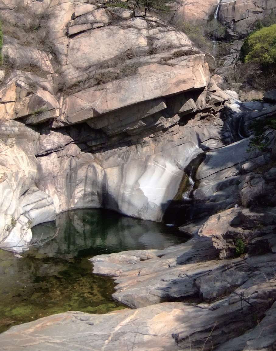 顺谷而上,峰奇涧深,林茂溪流。奇石欲飞,岩崖欲倾,鸟语不绝,花香沁肺。涧水自拔山老沟而下,穿山越涧,曲行数里,落入池潭,瀑流跌宕,赤鳞鱼在这里繁衍生息着。