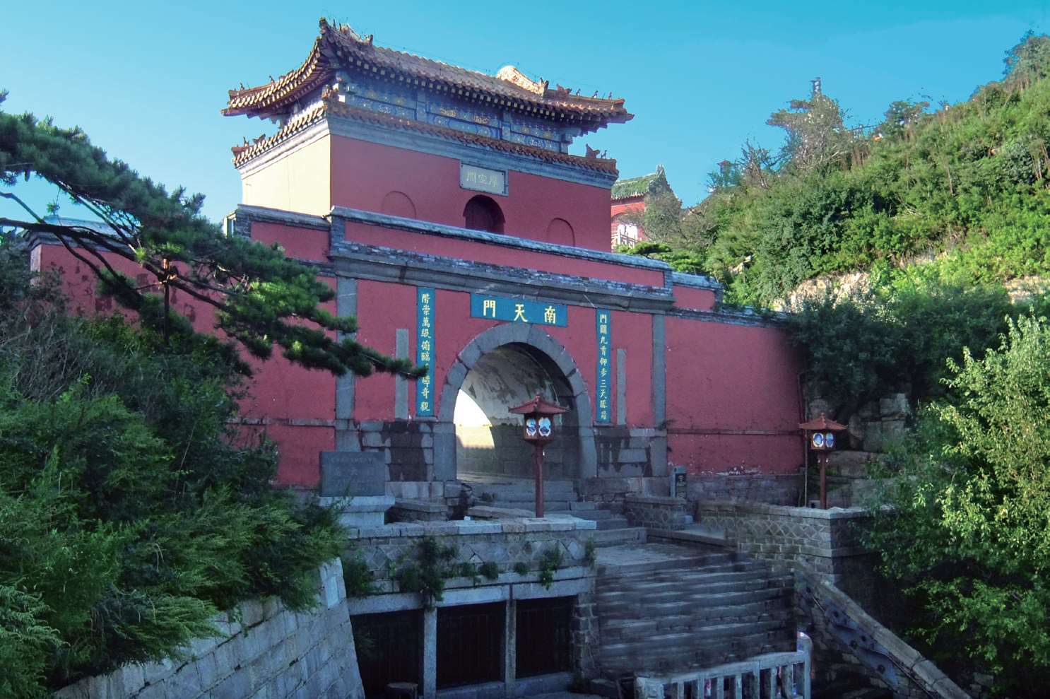 南天门,又名三天门,位于十八盘尽头,在登山盘道顶端,坐落在飞龙岩和凤翔岭之间的山口上。由下仰视,犹如天上宫阙,是登泰山顶的门户。