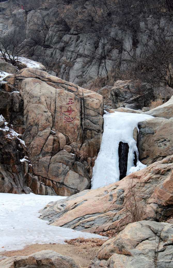 开山北为龙门,旧有龙门坊,后来被毁了。西岩有清代道光年间工技师魏祥摹刻的狂草“龙门”大字。坊址东为大龙峪,雨季众水归峡,飞泉若泻。