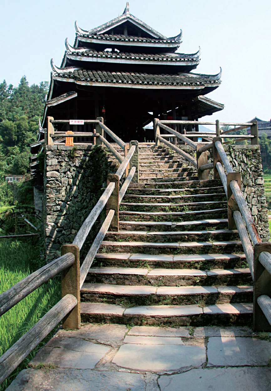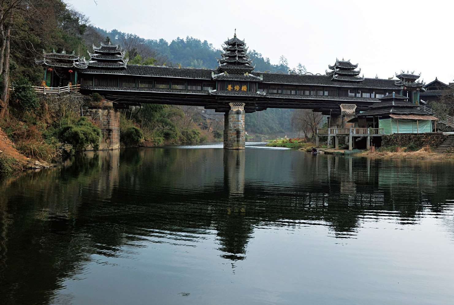 这件事一传十,十传百,很快传遍了整个侗乡。侗乡人便把靠近水面的小木桥,改建成了空中长廊式的大木桥,不光在大木桥上建了亭子,还在大桥的四条中柱上刻上花龙的图案,以祝愿花龙长驻人间。