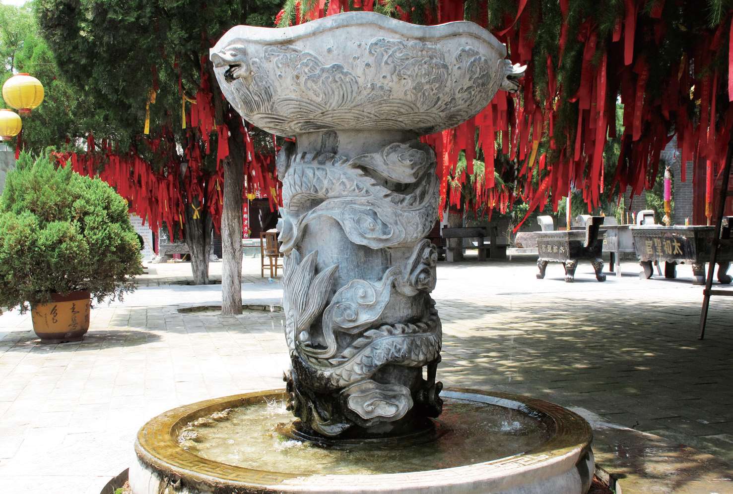 太初宫的西厢房北侧有一块灵石,传说老子曾在石上著过经。灵石上下平滑,由八条白石英条平行线切割为九层。