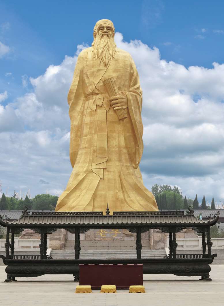。老子的塑像皓首长髯,神采奕奕,正在聚精会神地著书。老子两侧分立着书童徐甲和函谷关关令尹喜。
