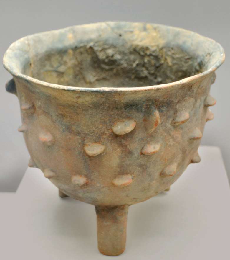 这时的陶器器类少,性质比较单一,常见的陶器中,以砂质的深腹罐、泥制的小口壶、圜底或三足钵和碗类器较多,并有一些鼎、瓮、盘、豆、盂等。各地发现的陶器中,除有早、晚之分外,陶器的形制与花纹装饰还有地区差别。