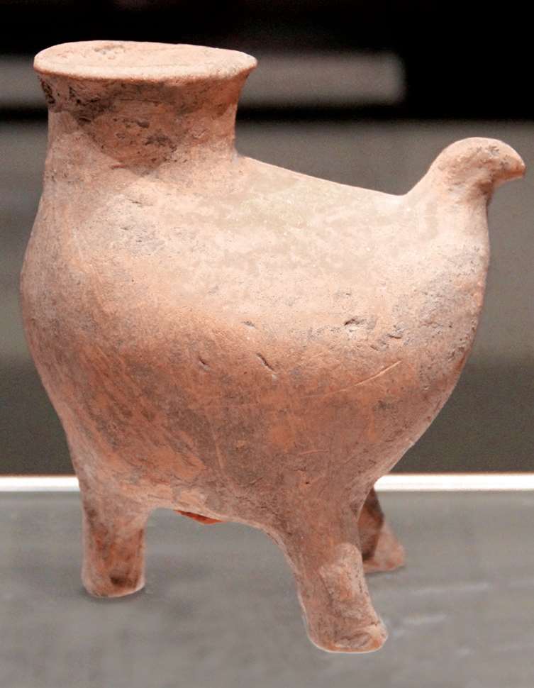 齐家文化陶塑的题材多样,以鸟类雕塑最多,有的形状像水鸟,有着长嘴、长颈和短尾。有的形状像鸽子,体态丰满浑圆。有的作展翅欲飞状,身上的锥刺纹表示羽毛。有的为三足鸟,这和传说中的太阳鸟或许有关系。