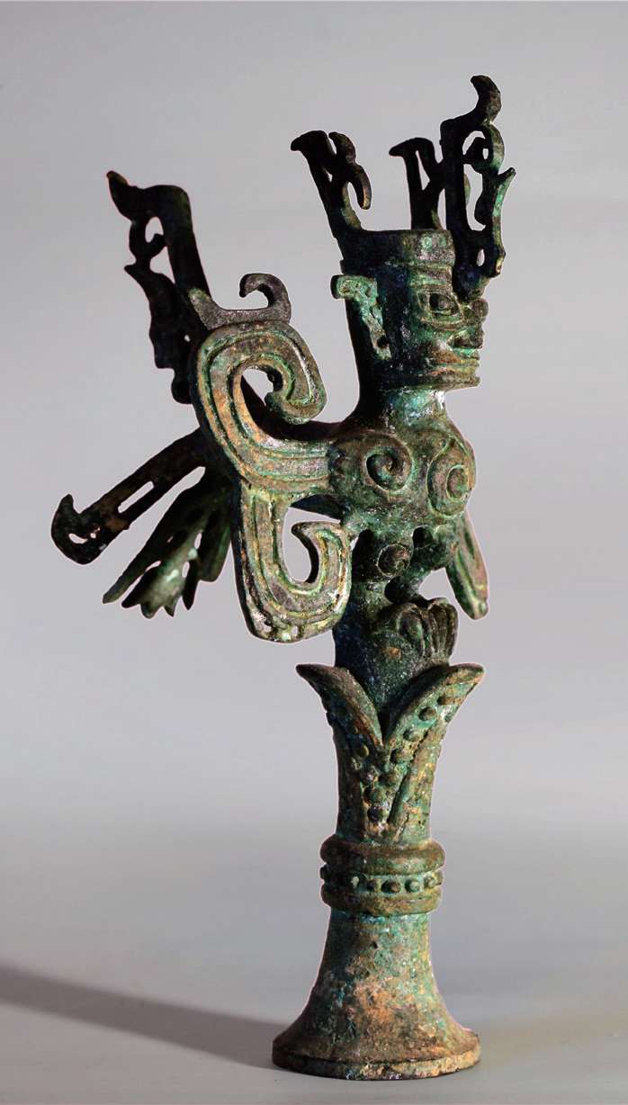同时,在旁边还有数件原本应该立在花蕾上的铜鸟、人面鸟身像等,很可能其中的一件便是那只居于神树上枝的铜鸟。
