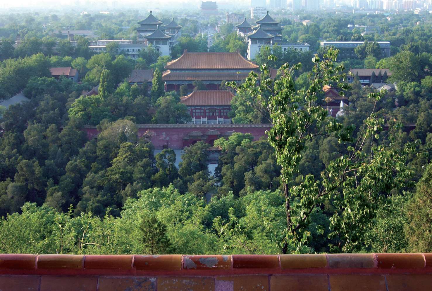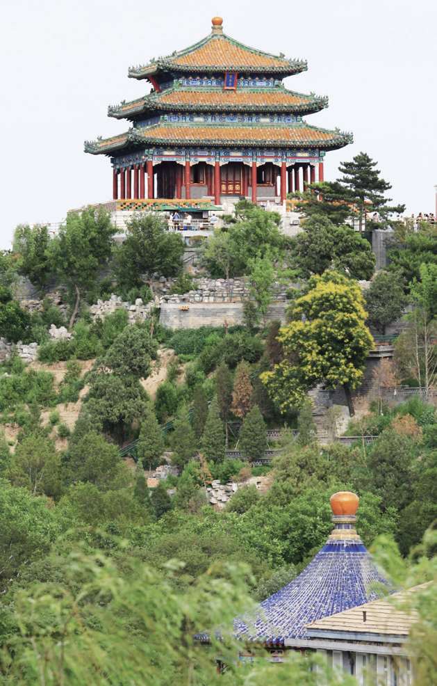 万春亭位于景山中峰,中峰相对高度为45.7米,是北京城南北中轴线上最高的也是最佳的观景地点。
