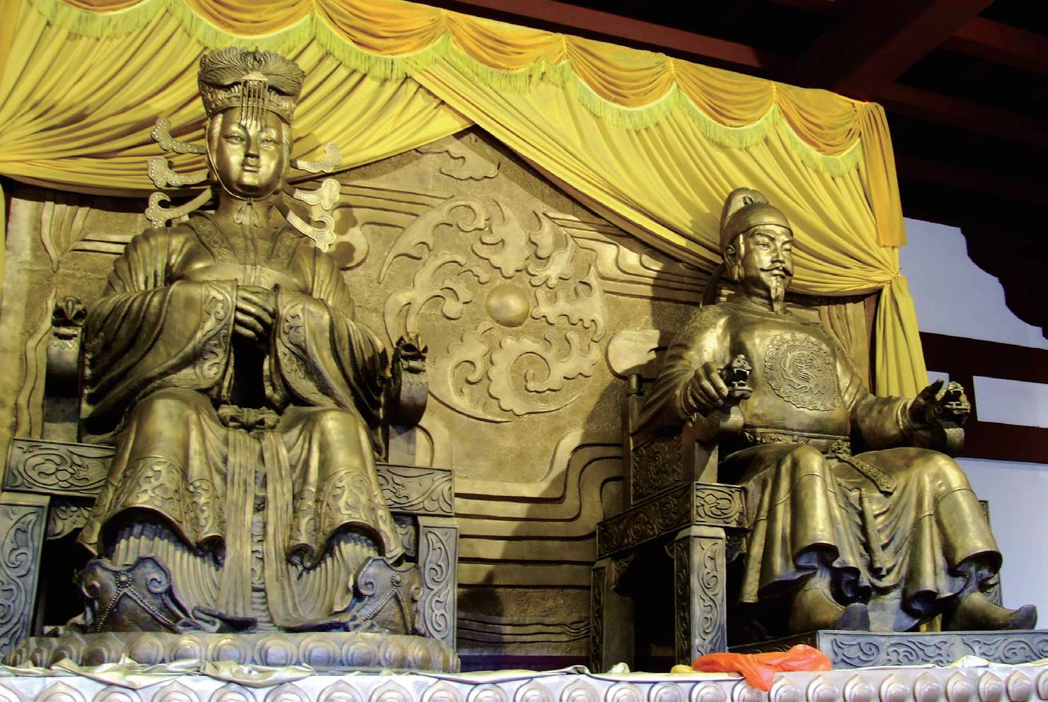 武则天逝后成神当然只是民间的一种说法而已,事实上,皇泽寺创建于北魏晚期,原名乌奴寺,也叫川主庙,相传是为了纪念李冰与二郎神的,历经北周、隋代、唐初的不断发展,渐成规模。武则天建立武周政权以后,施脂粉钱修建当时已具规模的川主庙,并取“皇恩浩荡,泽及故里”之意,改川主庙为皇泽寺。