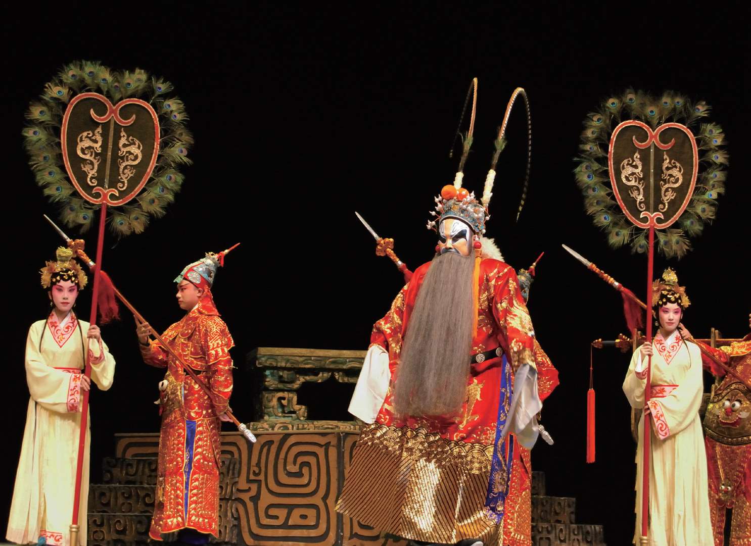 如在《窦娥冤·羊肚》中,为表现张婆婆误食毒羊肚,腹痛难忍时,川剧的老旦演员,就会使用气功这一特技,使张婆婆的脸色时如红炭,时如纸白,表现张婆婆临死前的痛苦万状。