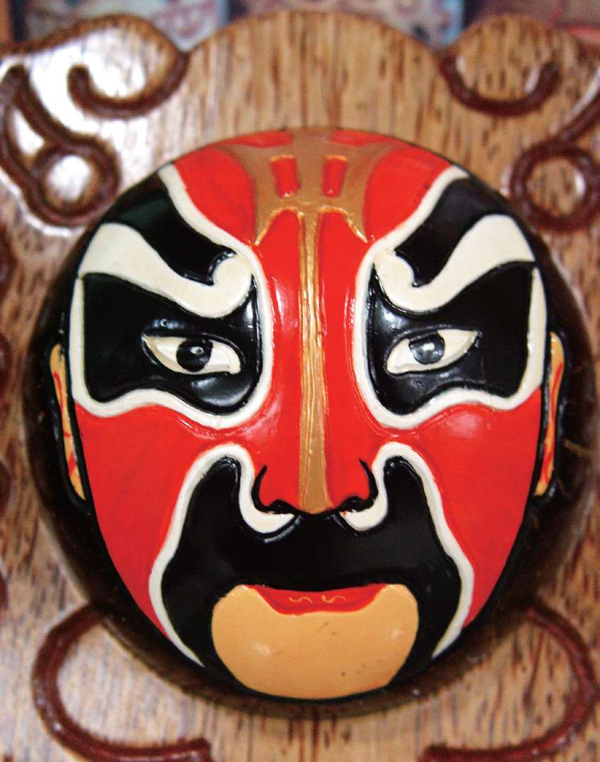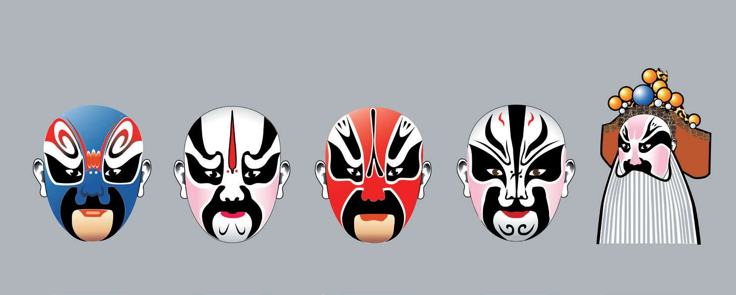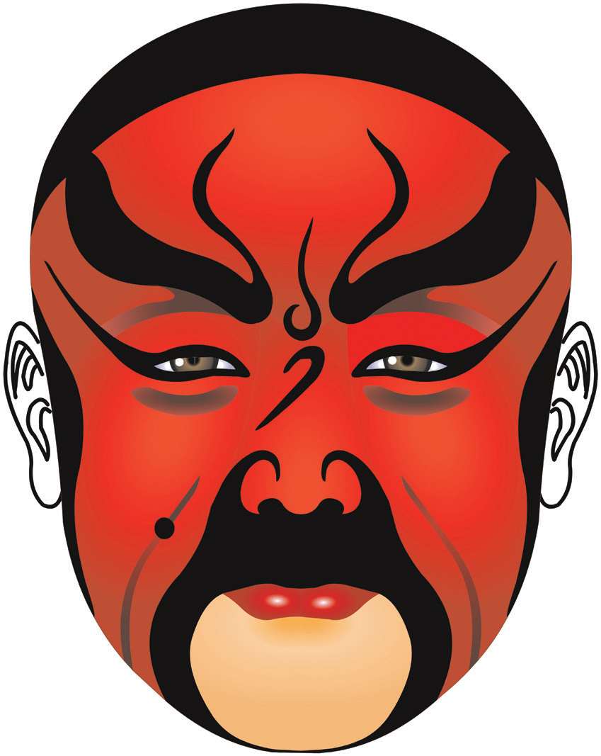 京剧的脸谱图案非常丰富,大体上分为额头图,眉型图,眼眶图,鼻窝图,嘴叉图,嘴下图。