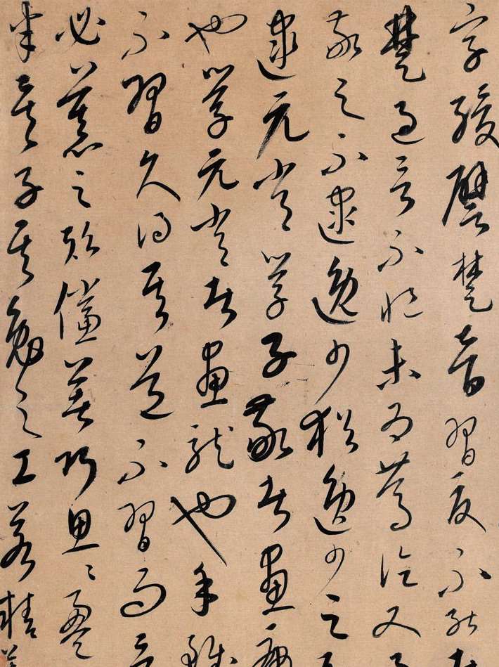 从墨迹来看,张旭手中的毛笔呈现飞动之势,使转无不如意。理解张旭的草书似乎可以在对公孙大娘舞剑的想象中来完成。