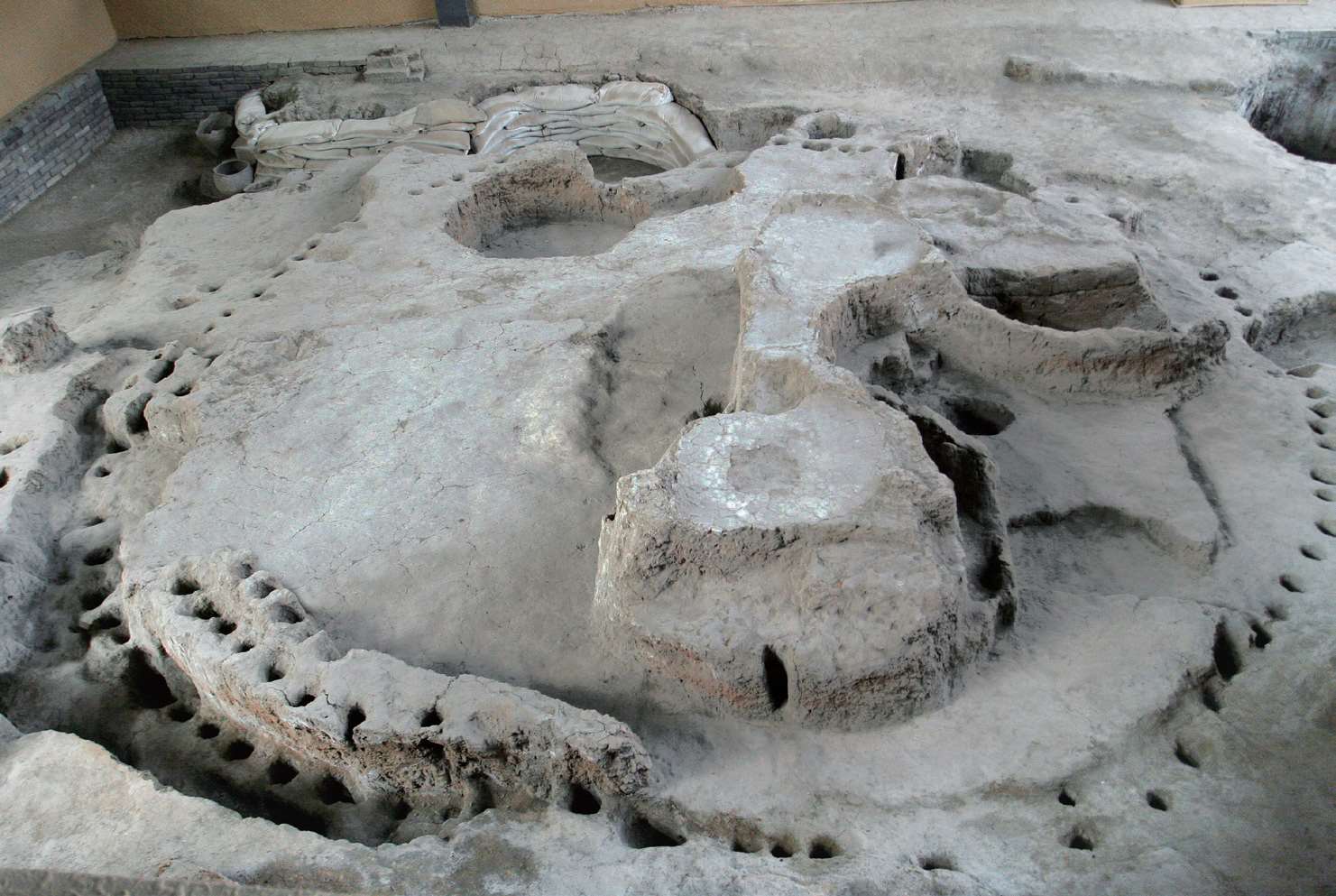 河阶台地不仅建立起灿烂的半坡文化,也是许多著名遗址的发源地,像河北武安的磁山遗址。在磁山遗址有两座房基址,为椭圆形和圆形。半地穴,深约1.2米,长3米,宽2米。前有一坡道或台阶。房内堆积很多,芦苇压印的烧土地当是房子墙壁或屋顶的遗存。