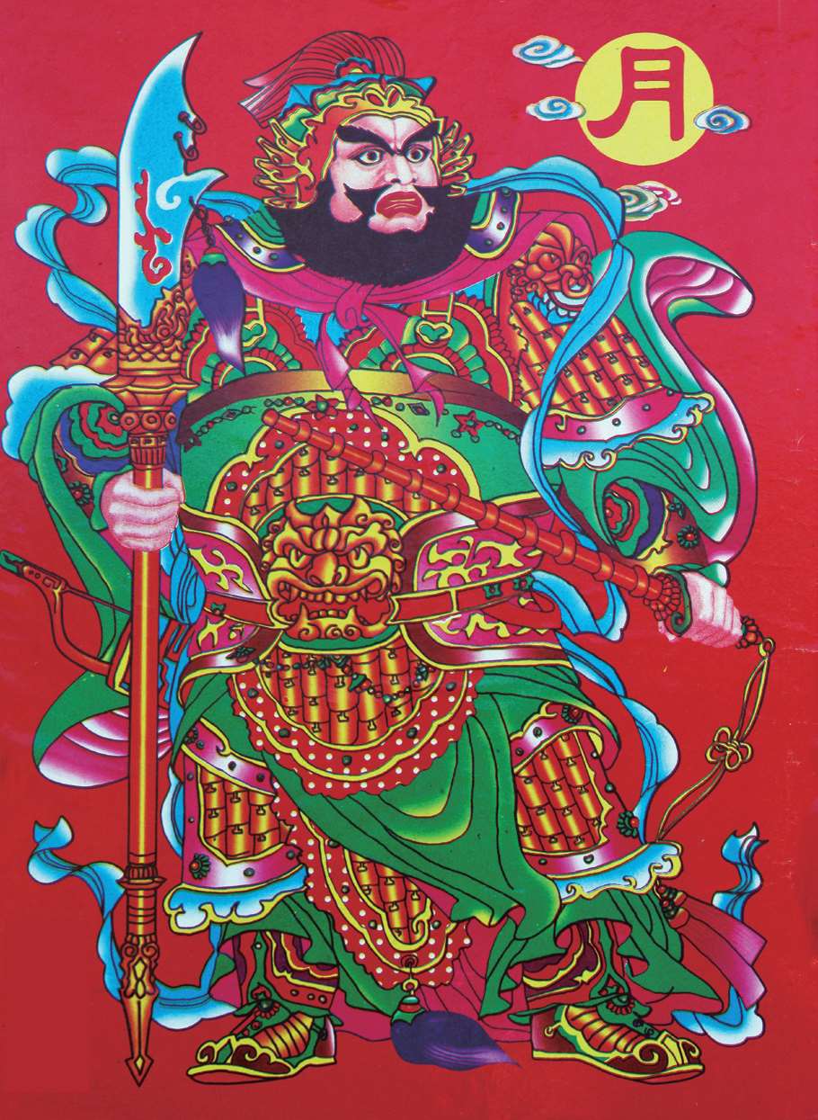 门神是我国道教因袭民俗所奉的司门之神。据说,在大门上贴上两位门神,一切妖魔鬼怪都会望而生畏。