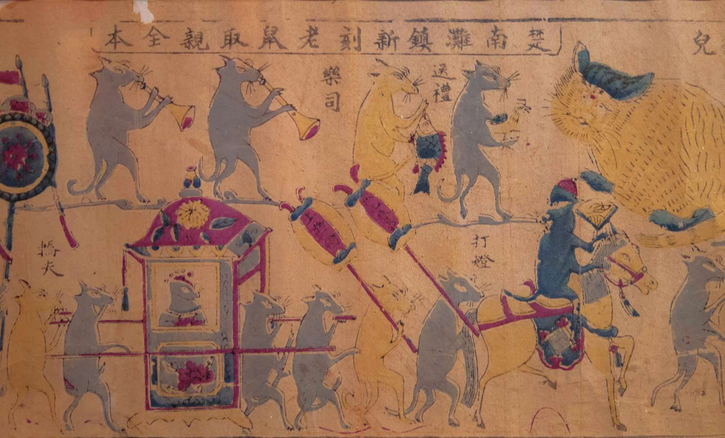 民间流传最广的是一幅《老鼠娶亲》的年画,描绘了老鼠依照人间的风俗迎娶新娘的有趣场面。