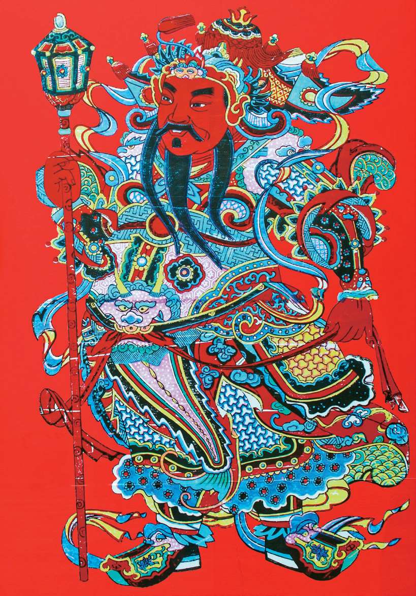 年画也和春联一样,起源于“门神”。随着木板印刷术的兴起,年画的内容已不仅限于门神之类单调的主题,而是变得丰富多彩。在一些年画作坊中产生了《福禄寿三星图》《天官赐福》《五谷丰登》《六畜兴旺》《迎春接福》等经典的彩色年画,以满足人们喜庆祈年的美好愿望。