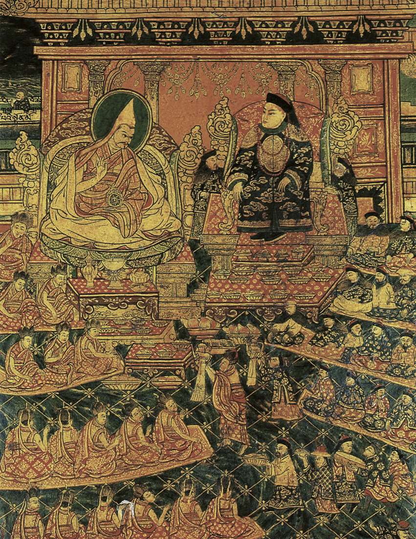 17世纪中期,在对布达拉宫进行扩建时,新修的红宫内的壁画均出自藏传佛教中门唐派和堪孜派画家之手。门唐派和堪孜派是藏传佛教绘画的两大派别,后来两派逐渐融为一体,称为“门堪派”。