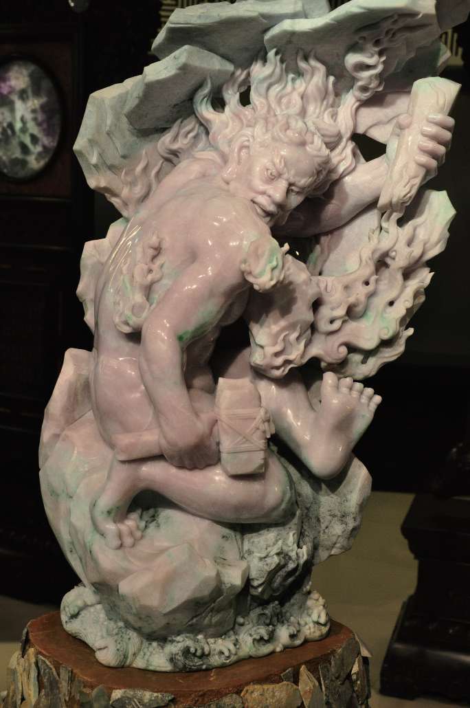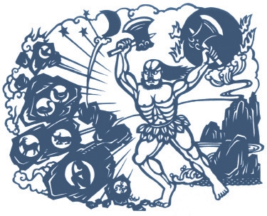急切间,盘古拔下自己的一颗牙齿,把它变成威力巨大的神斧,抡起来用力向周围劈砍。