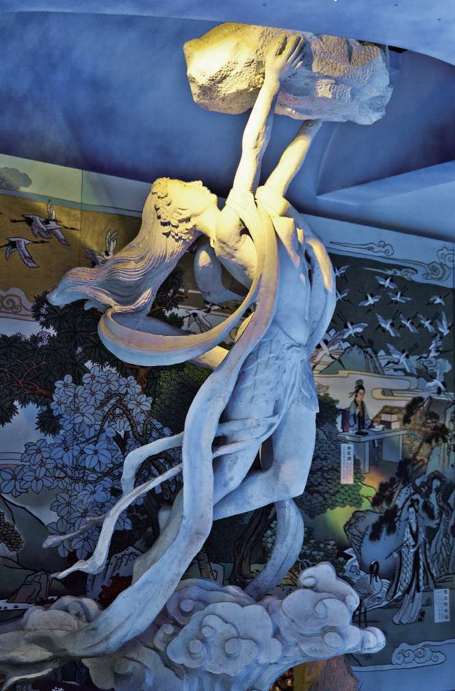 虽然女娲补的天不一定就是共工氏所破坏的,但她补的天一定是出了问题的。她炼五色石补苍天,断鳌足以立天之四极,积芦灰以止洪水,是人类改变环境最早的想象。其实,“女娲补天”的神话背后,传递出诸多的远古信息和智慧启迪。女娲为何不是“改天”而是“补天”?这便是“顺天应道”。