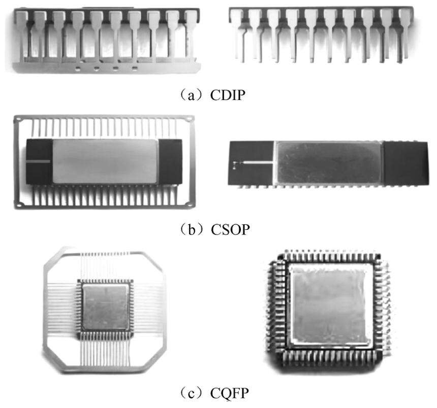 需要成型剪边的有陶瓷双列直插封装(CDIP)、陶瓷小外形封装(CSOP)、陶瓷方形扁平封装(CQFP)等型号元器件,带引脚的陶瓷芯片载体CLCC、CBGA等型号元器件一般不需要成型剪边。