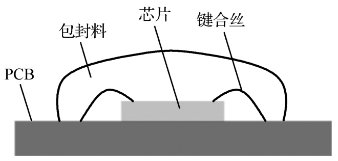 液体包封是先以液体的形式分配封装材料,然后固化形成固态的封装形态,如图2-43所示。相比于传递模塑封,液体包封的材料利用率更高,且封装压力小,不容易产生与封装料流动性相关的问题,如金线偏移。液体包封可分为顶部填充、底部填充和灌封。