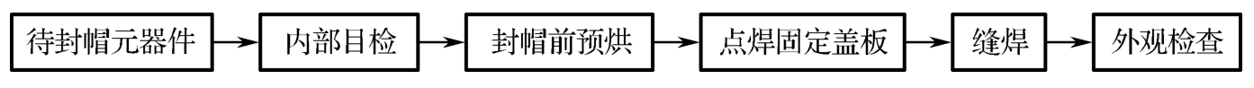 平行缝焊封帽过程中需要特别加强封帽环境气氛的控制,以使密封腔体内的水汽浓度、氧气含量达到工艺规定的要求。一般工艺要求在100℃时烘24h,水汽浓度小于5000ppm,氧气浓度低于200ppm。平行缝焊封帽的缺点是在缝焊过程中会使焊缝处镀层及其材料受到破坏,焊缝处的抗盐雾耐腐蚀能力变弱,所以有较高的耐腐蚀要求的器件应尽可能不采用平行缝焊封帽。
