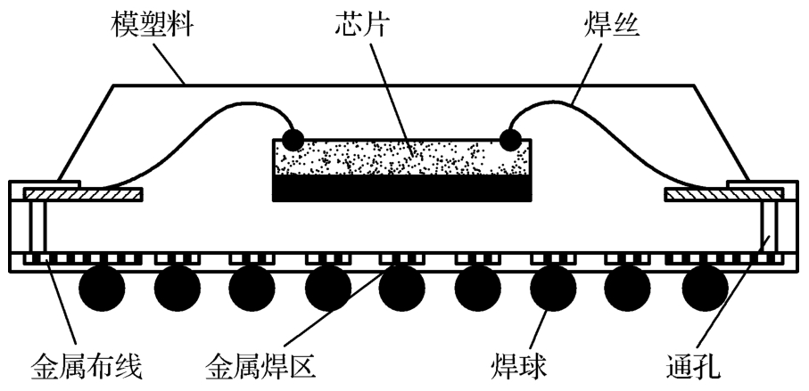 TBGA是由连接至Cu/PI柔性电路或具有两层由管芯连接至BGA的Cu线组成的。引线键合、再流焊或热压/热声波内部引线连接等方法可以用来连接管芯与Cu线。键合互联后,对于管芯采用密封处理以提供有效的保护,焊球通过类似于引线键合的微焊工艺处理被逐一连接到Cu线的另一端。