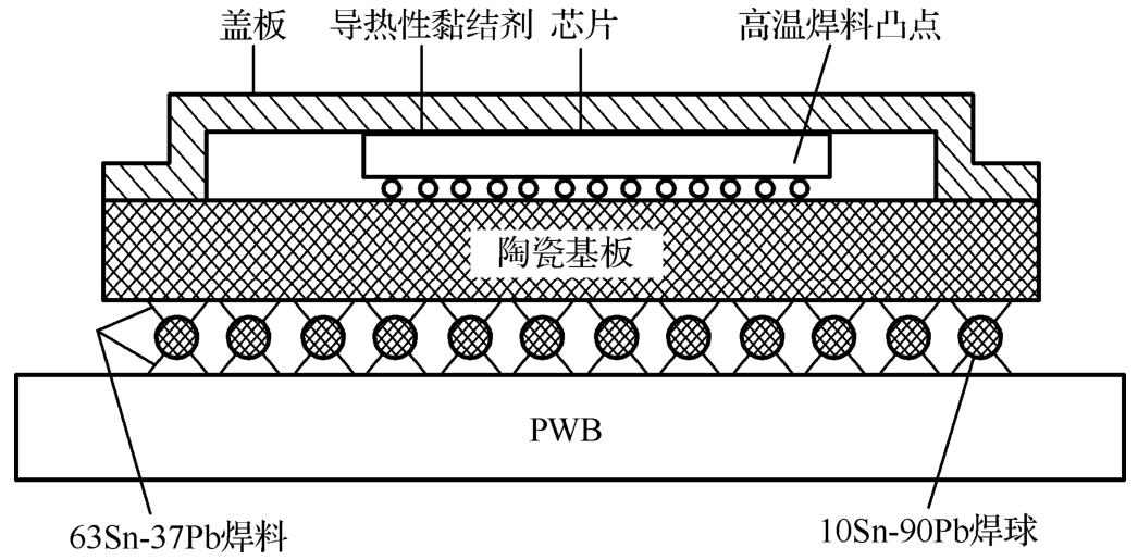 基板的主要材料是多层氧化铝(Al 2 O 3 )陶瓷,这种材料适应高温和化学处理,因此在器件封装和板级装配时都没有工艺限制。信号层、电源层和地层分别设置在单独的层上,经过打孔和丝印形成高温印制线与连接孔,叠加后在高温下烧结成型。该基板的层数一般为7~40层,厚度为1.40~5.75mm。氧化铝陶瓷的热膨胀系数为6.5×10 -6 ℃,硅芯片的热膨胀系数为3.0×10 -6 ~4.1×10 -6 ℃,两者较为接近。因此,芯片可以采用倒装的形式安装在基板上,这种形式缩短了信号通路,降低了寄生效应,使信号速度和品质均得到提高。更重要的是,芯片正下方可以连接焊柱,实现了全阵列和引脚数量的提高,提升了电性能。