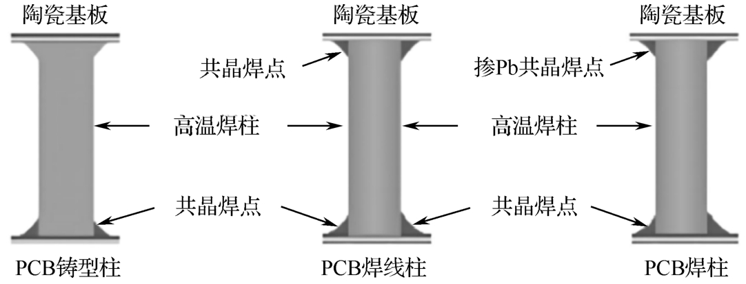 焊柱包含了上述两种连接方式的优点,它采用焊线柱的结构和工艺流程,只是使用掺杂少量Pd元素的共晶焊料替代原来的共晶焊料。这种焊料在183℃时发生熔化,但形成Pd-Sn IMC后,熔点会变为280℃。因此,元器件生产时相当于使用标准共晶焊料,板级装配返修时相当于使用高温焊料,问题巧妙地得到了解决。