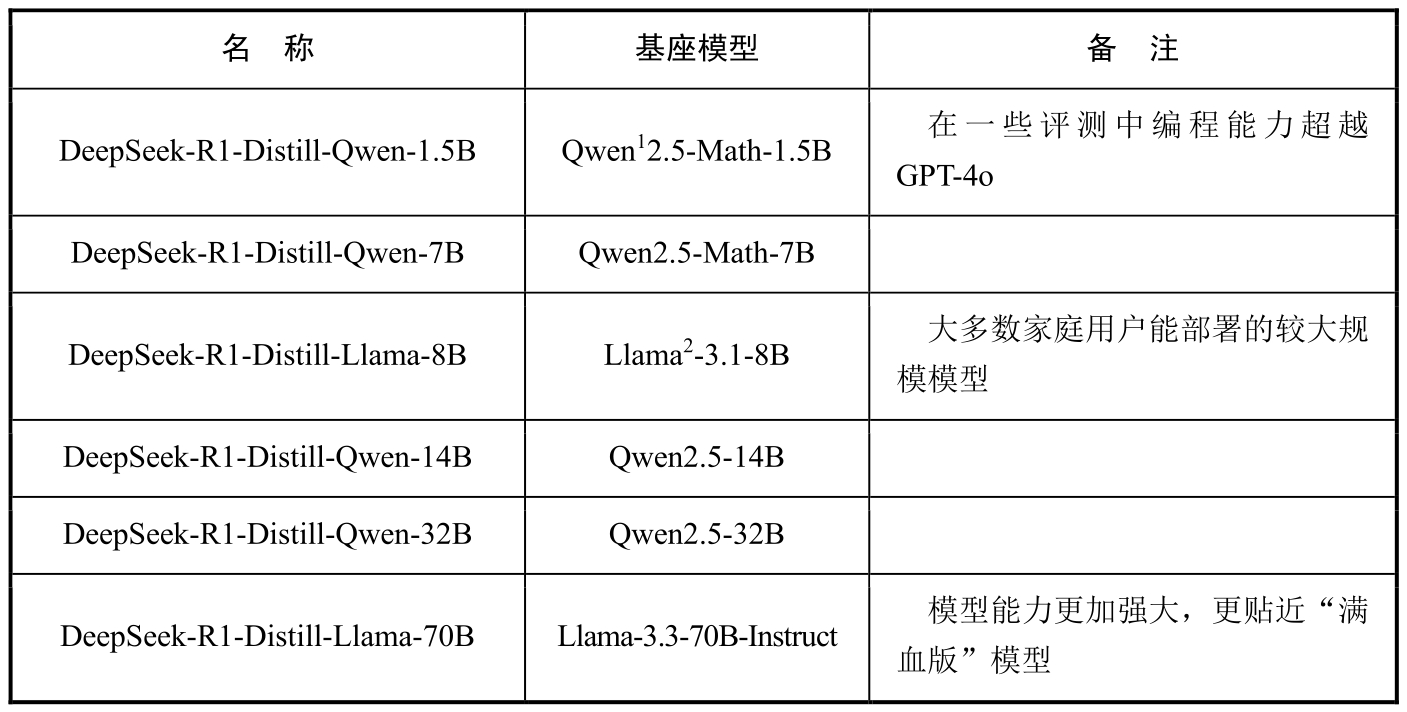 表1-2 DeepSeek官方使用R1模型蒸馏的几款小模型